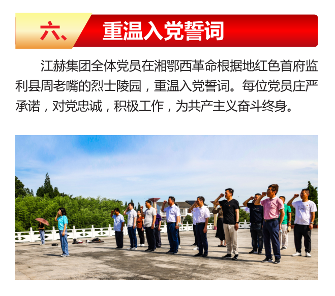 在中國共產(chǎn)黨建黨100周年之際,為大力發(fā)揚(yáng)紅色傳統(tǒng),傳承紅色基因,爭做時代新人。在江赫集團(tuán)黨支部書記、董事長王忠孝同志的帶領(lǐng)下,江赫集團(tuán)黨員走進(jìn)著名的湘鄂西革命根據(jù)地紅色首府和洪湖瞿家灣參觀學(xué)習(xí)。